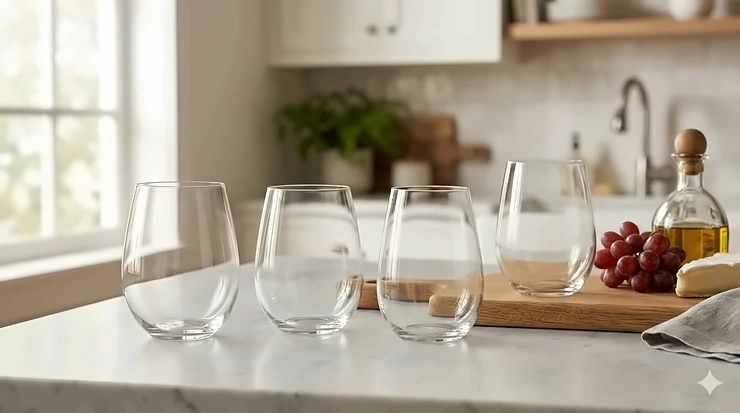 | Acrylic/Plastic Stemless | $2–$5/glass | ⭐⭐⭐⭐⭐ | ⭐⭐ | Outdoor, poolside, travel |